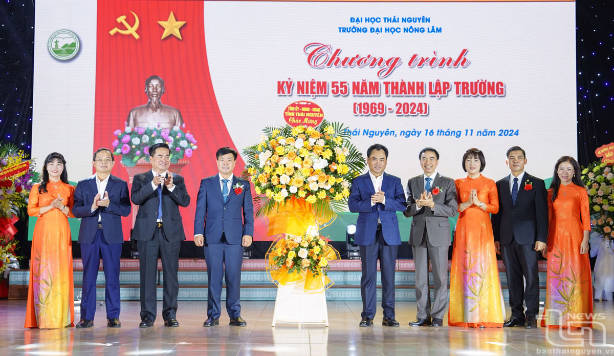 Vào ngày 15 và 16/11/2024, trường Đại học Nông Lâm Thái Nguyên đã long trọng tổ chức lễ kỷ niệm 55 năm thành lập trường, kết hợp tri ân ngày Nhà giáo Việt Nam. Buổi lễ diễn ra trong không khí trang trọng, ấm áp, và tràn đầy ý nghĩa, quy tụ đông đảo các thế hệ cán bộ, giảng viên, cựu sinh viên và sinh viên hiện tại, tạo nên một sự kiện đầy cảm xúc và gắn kết.